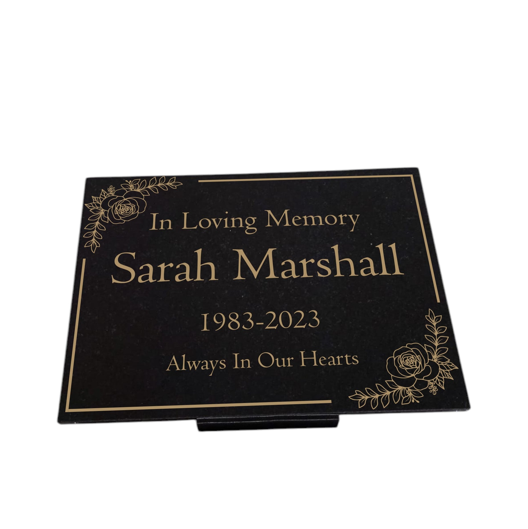 Granite Memorial Plaque, Roses, Personalised, Stand Included